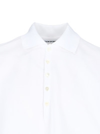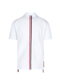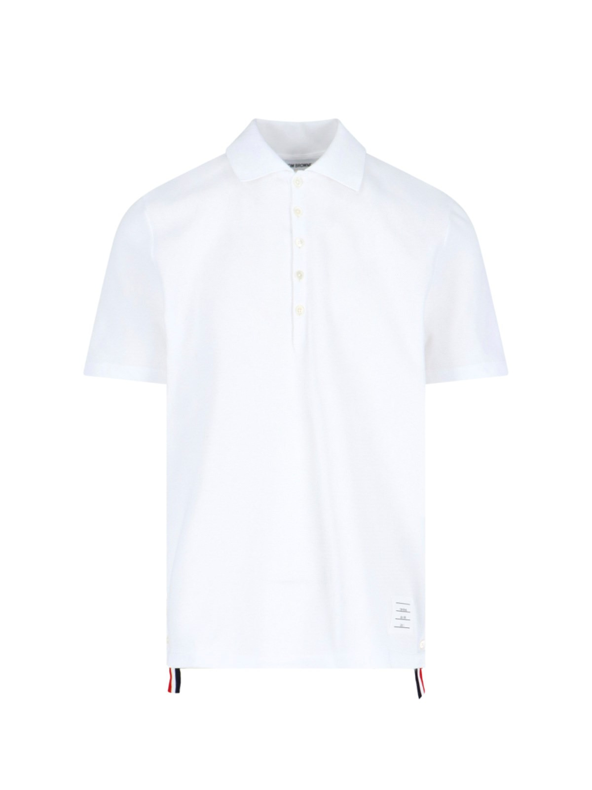 THOM BROWNE TRICOLOR DETAIL POLO SHIRT IN WHITE COTTON WITH CLASSIC COLLAR, SHORT SLEEVES, BUTTON CLOSURE, WHITE LOGO LABEL ON THE FRONT, SIDE BUTTON SLITS, TRICOLOR GROSGRAIN TAB ON THE BACK, LONG HEM ON THE BACK. PRODUCT INFO PRODUCT CODE MJP042A 00050100 COMPOSITION: 100% COTTON SIZE AND FIT: ADJUST MADE IN: ITALIA - NUMERICAL SIZING