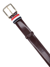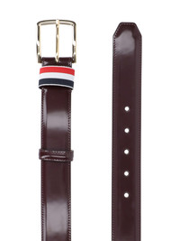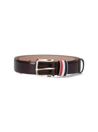 THOM BROWNE STRIPED LOOP BELT IN BROWN CALF LEATHER WITH GOLD METAL BUCKLE ON THE FRONT, MULTICOLOR GROSGRAIN LOOP, ADJUSTABLE. PRODUCT INFO PRODUCT CODE MCX039A L0045205 COMPOSITION: 100% CALF LEATHER SIZE AND FIT: HEIGHT 3.5 CM MADE IN: ITALY