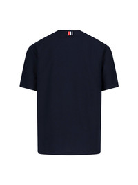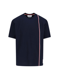 THOM BROWNE TRICOLOR DETAIL BLUE COTTON CREW NECK T-SHIRT WITH SHORT SLEEVES, TRICOLOR DETAIL ON THE FRONT, WHITE LOGO LABEL ON THE FRONT, TRICOLOR TAB ON THE BACK, LONGER HEM ON THE BACK. PRODUCT INFO PRODUCT CODE MJS252A J0138415 COMPOSITION: 100% COTTON SIZE AND FIT: REGULAR MADE IN: GIAPPONE