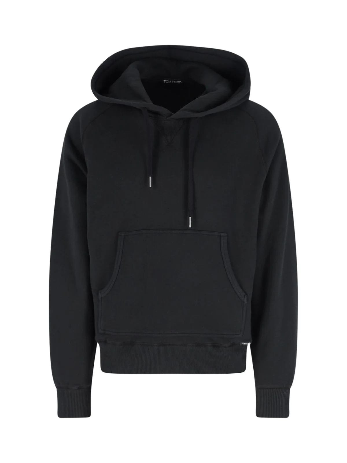 TOM FORD BLACK COTTON HOODIE WITH DRAWSTRING HOOD, DROPPED SHOULDERS, MAXI FRONT POCKET, SIDE LOGO LABEL DETAIL, RIBBED TRIM, STRAIGHT HEM. PRODUCT INFO PRODUCT CODE JOL001 JMC006S23LB999 COMPOSITION: 100% COTTON SIZE AND FIT: REGULAR FIT MADE IN: ITALY