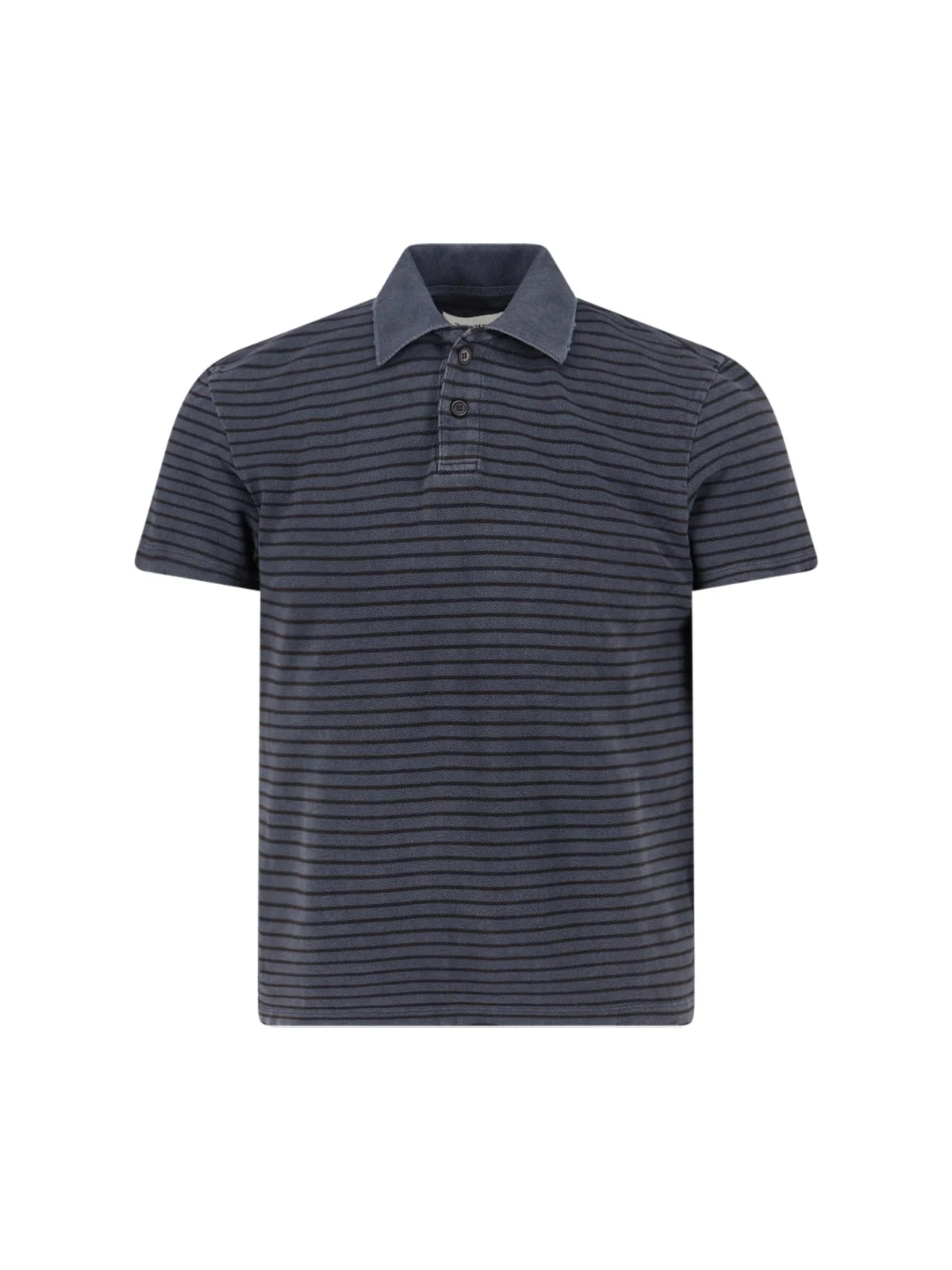TONYWACK STRIPED POLO SHIRT IN DARK GRAY COTTON DENIM WITH CONTRASTING STRIPES, CLASSIC COLLAR, BUTTON CLOSURE, STRAIGHT HEM. PRODUCT INFO PRODUCT CODE BF12TS305FADED BLACK COMPOSITION: 100% COTTON SIZE AND FIT: REGULAR FIT MADE IN: SOUTH KOREA