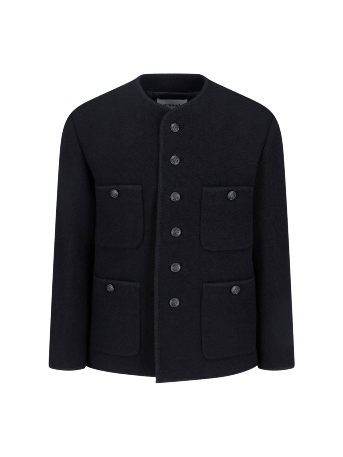TONY WACK BLACK WOOL BLOUSON WITH CREW NECK, BUTTON CLOSURE, FOUR FRONT BUTTON PATCH POCKETS, STRAIGHT HEM. PRODUCT INFO PRODUCT CODE BE34CJ21BLACK COMPOSITION: 73% WOOL, 27% NYLON SIZE AND FIT: SOFT FIT MADE IN: KOREA