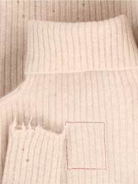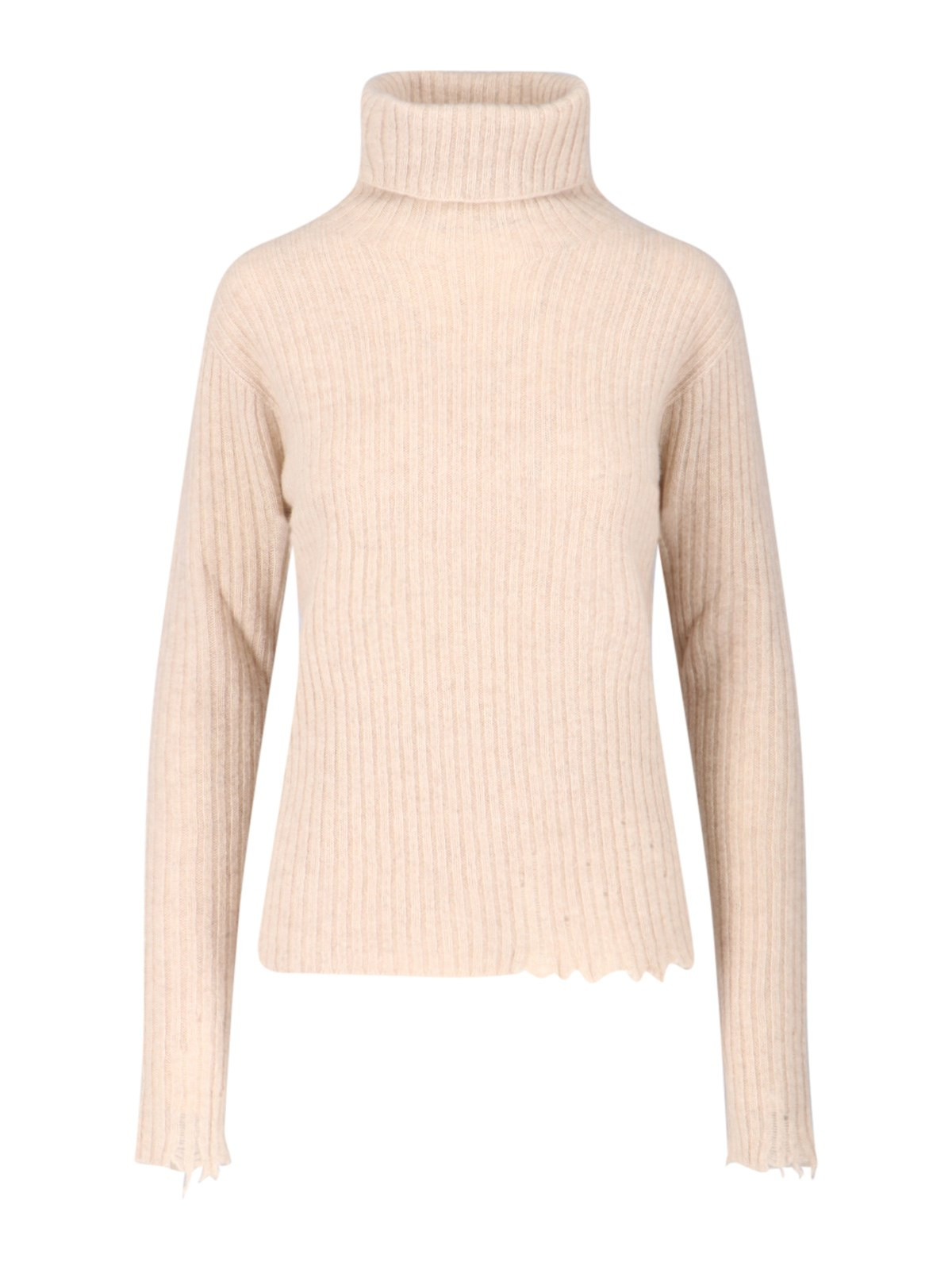 UMA WANG BEIGE CASHMERE TURTLENECK SWEATER WITH RIBBED PATTERN, LOGO EMBROIDERY AT THE BACK, DESTROYED TRIM, STRAIGHT HEM. PRODUCT INFO PRODUCT CODE UK7151UW200 COMPOSITION: 100% CASHMERE SIZE AND FIT: REGULAR FIT MADE IN: ITALY