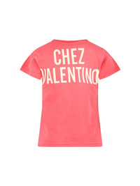 VALENTINO CHEZ PINK COTTON CREW NECK T-SHIRT WITH SHORT SLEEVES, DISTRESSED CREAM PRINT ON THE FRONT, MAXI CREAM LOGO PATCH ON THE BACK, STRAIGHT HEM. PRODUCT INFO PRODUCT CODE 7B3MG24Y9GLBNA COMPOSITION: 100% COTTON SIZE AND FIT: REGULAR FIT MADE IN: ITALY