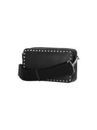 VALENTINO "ROCKSTUD" CROSSBODY BAG IN BLACK HAMMERED LEATHER WITH ADJUSTABLE SHOULDER STRAP, ZIP CLOSURE, SILVER METAL STUDS AFFIXED TO THE FRONT AND BACK, A SINGLE INNER COMPARTMENT. PRODUCT INFO PRODUCT CODE 6Y2B0704TED0NO COMPOSITION: 100% LAMBSKIN SIZE AND FIT: H 14 X W 24 X D 5.5 CM MADE IN: ITALY