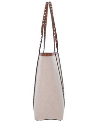 VALENTINO GARAVANI ROCKSTUD TOTE BAG IN BEIGE FABRIC WITH CHECK PATTERN, TWO HANDLES, ZIP CLOSURE, GOLD METAL STUDS APPLIED FRONT AND BACK, REMOVABLE INTERIOR ZIP POUCH, AND MAIN INNER COMPARTMENT. PRODUCT INFO PRODUCT CODE 6W2B0Q99QCERDV COMPOSITION: 100% TEXTILE SIZE AND FIT: H 37 X W 32 X D 14 CM MADE IN: ITALY - TRIMS: 100% LEATHER