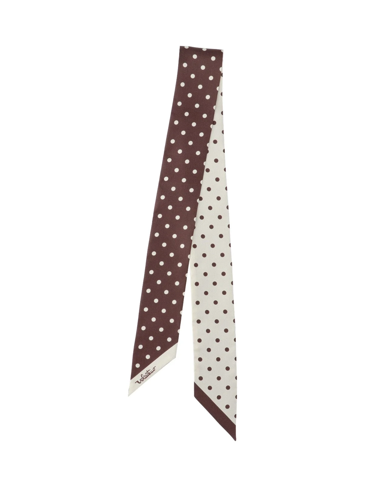 VALENTINO GARAVANI BROWN SILK SCARF WITH ALL-OVER POLKA DOT PATTERN, LOGO PRINTED ON THE EDGES. PRODUCT INFO PRODUCT CODE 8W2E6017XHDBVB COMPOSITION: 100% SILK MADE IN: ITALY