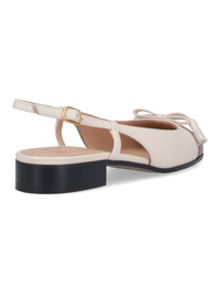 VALENTINO GARAVANI "VALET DU ROI" SLINGBACK BALLET FLATS IN WHITE LEATHER WITH TWO-TONE DETAILS, ROUND TOE, GOLD METAL "VLOGO SIGNATURE" LOGO DETAIL, TOP LEATHER BOW WITH TASSELS, ADJUSTABLE ANKLE SLINGBACK STRAP, SQUARE HEEL, SLIP-ON FIT, LEATHER SOLE. PRODUCT INFO PRODUCT CODE 6W0S0MH0DDTAHA COMPOSITION: 100% GOAT LEATHER SIZE AND FIT: HEEL 2.5 CM MADE IN: ITALY - SOLE: 100% LEATHER