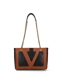 VALENTINO GARAVANI 'VIVA SUPERSTAR' SMALL TOTE BAG IN BLACK NAPPA LEATHER, TWO SLIDING HANDLES IN GOLD METAL CHAIN AND LEATHER, ZIP CLOSURE, MAXI BROWN 'VLOGO' LOGO PATCH ON THE FRONT, MAXI BACK ZIP POCKET, SINGLE INNER COMPARTMENT. PRODUCT INFO PRODUCT CODE 6W2B0R14PTJRFA COMPOSITION: 100% LAMB LEATHER SIZE AND FIT: H 18 X W 27 X D 3 CM MADE IN: ITALY -HANDLE DROP: 24.5 - 46 CM
