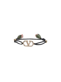 VALENTINO GARAVANI "VLOGO SIGNATURE" BRACELET IN BLACK FABRIC, GOLD BRASS "VLOGO SIGNATURE" LOGO, RHINESTONE APPLICATIONS, FLOWER DETAIL, ADJUSTABLE. PRODUCT INFO PRODUCT CODE 8W2J0BH7IWVBUT COMPOSITION: 100% BRASS MADE IN: ITALY - TRIMS: 100% METAL