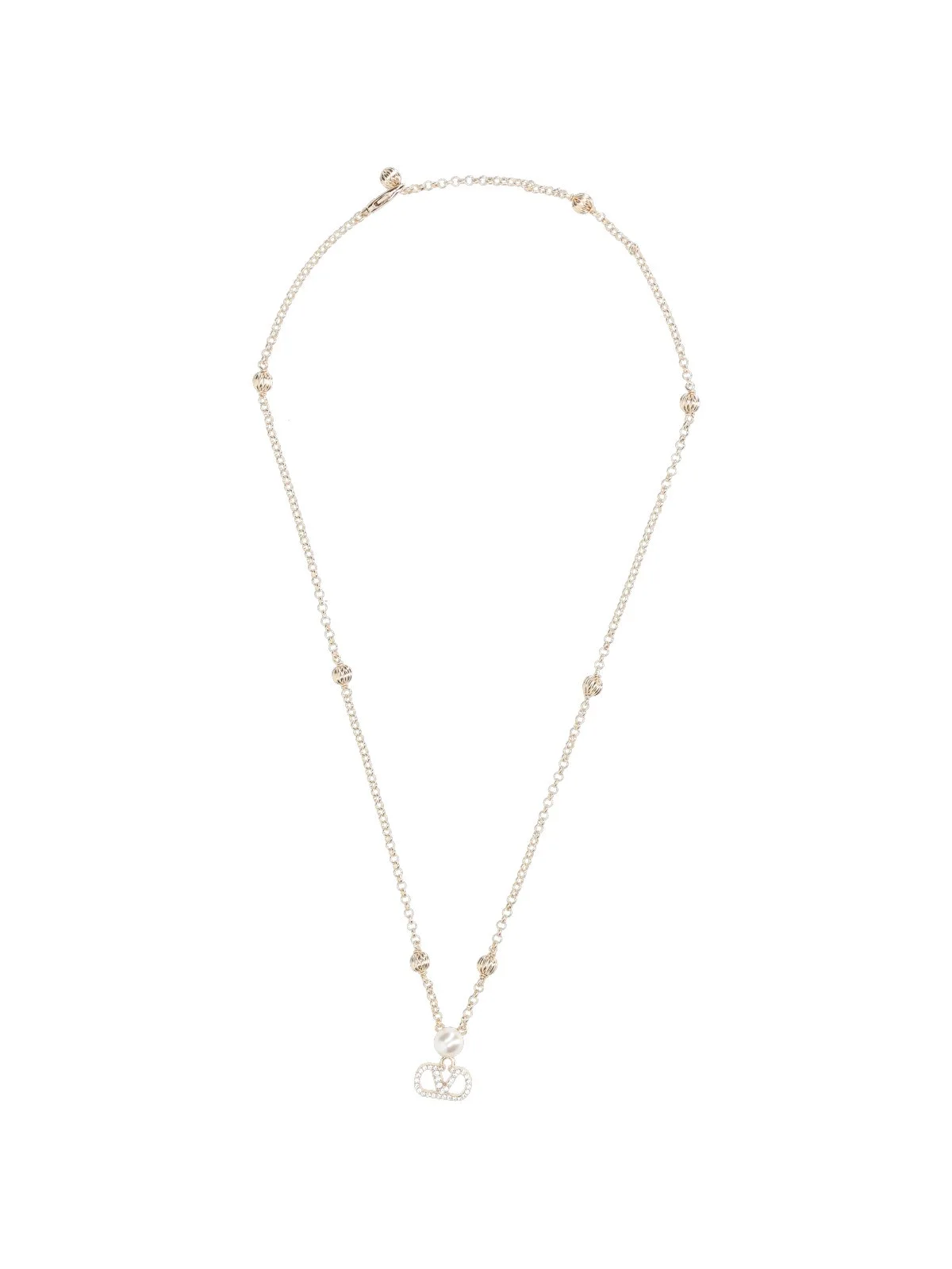 VALENTINO GARAVANI "VLOGO SIGNATURE" NECKLACE IN GILDED BRASS, "VLOGO SIGNATURE" PENDANT CHARM, EMBEDDED CRYSTALS, PEARL, ALL-OVER GOLD METAL CHARMS, BACK CLASP CLOSURE. PRODUCT INFO PRODUCT CODE 8W2J0BI3QVSCNP COMPOSITION: 100% BRASS MADE IN: ITALY