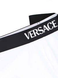 VERSACE LOGO BOXER SHORTS SET IN WHITE COTTON WITH CONTRASTING ELASTIC MID WAISTBAND, LOGO DETAIL, THE SET CONTAINS 3 BOXERS. PRODUCT INFO PRODUCT CODE 1020989 1A147831W000 COMPOSITION: 95% COTTON, 5% ELASTANE MADE IN: VIETNAM