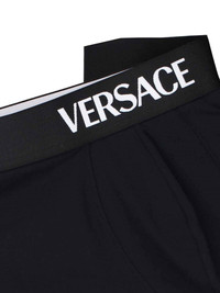 VERSACE LOGO BOXER SHORTS IN BLACK COTTON WITH MEDIUM ELASTIC WAISTBAND, CONTRAST LOGO DETAIL, THE SET CONTAINS 3 BOXERS. PRODUCT INFO PRODUCT CODE 1020989 1A147831B000 COMPOSITION: 95% COTTON, 5% ELASTANE SIZE AND FIT: REGULAR FIT MADE IN: VIETNAM