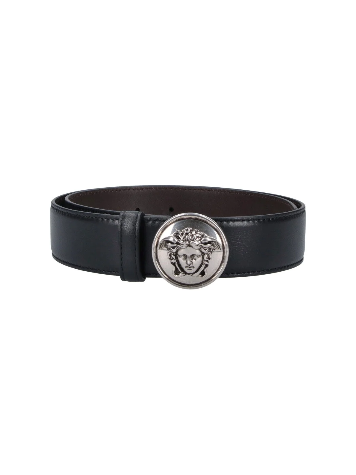 BLACK CALF LEATHER 'MEDUSA BIGGIE' BELT, SILVER METAL 'MEDUSA' LOGO BUCKLE, ADJUSTABLE. PRODUCT INFO PRODUCT CODE 1025016 DVTP11B00K COMPOSITION: 100% CALF LEATHER SIZE AND FIT: HEIGHT 3.5 CM MADE IN: ITALY