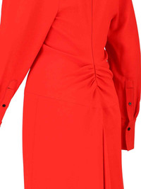 VICTORIA BECKHAM SHIRT MIDI DRESS IN RED VISCOSE BLEND WITH CAMP COLLAR, BUTTON CLOSURE, BUTTON CUFFS, DEEP BACK SPLIT, FLARED HEM. PRODUCT INFO PRODUCT CODE 1325WDR006598ATOMATO COMPOSITION: 50% VISCOSE, 47% ACETATE, 3% ELASTANE SIZE AND FIT: REGULAR FIT MADE IN: LITHUANIA