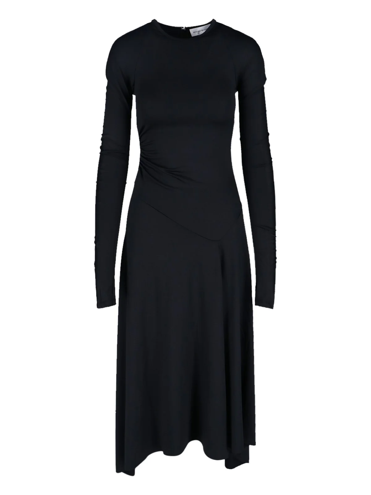 VICTORIA BECKHAM MIDI DRESS IN BLACK FABRIC WITH ROUND NECKLINE, LONG SLEEVES, DRAPING DETAIL ON THE FRONT AND BACK, AND ASYMMETRICAL HEM. PRODUCT INFO PRODUCT CODE 1126JDR006984ABLACK COMPOSITION: 90% POLYESTER, 10% ELASTANE SIZE AND FIT: REGULAR FIT MADE IN: PORTUGAL