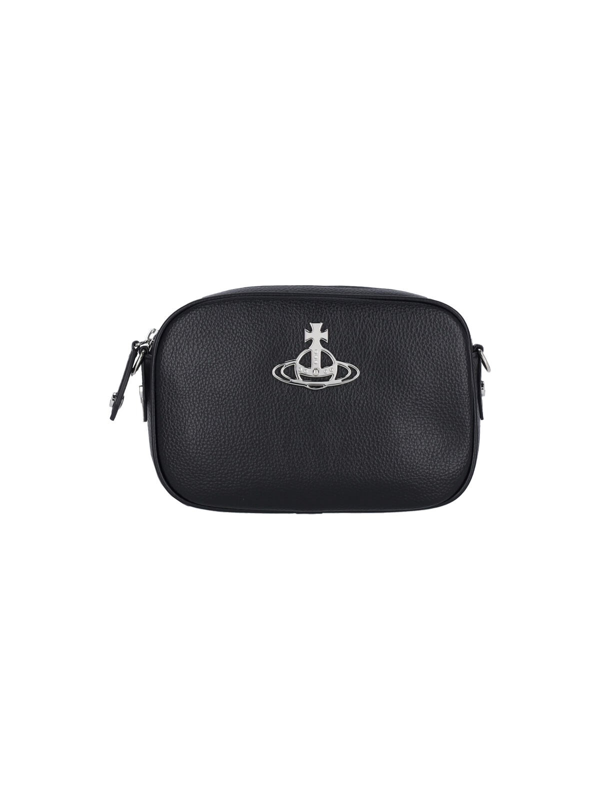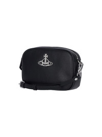 VIVIENNE WESTWOOD 'ANNA CAMERA BAG' POUCH IN BLACK FABRIC WITH HAMMERED PATTERN, ADJUSTABLE AND REMOVABLE SHOULDER STRAP, ZIP CLOSURE, SILVER METAL 'ORB' LOGO ON THE FRONT, BACK ZIP POCKET, SINGLE INNER COMPARTMENT. PRODUCT INFO PRODUCT CODE 48020003U S000DN403 COMPOSITION: 100% POLYURETHANE SIZE AND FIT: H 15 X W 21.5 X D 6 CM MADE IN: ITALY