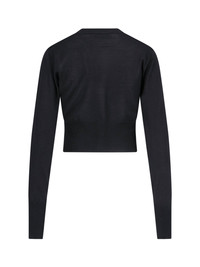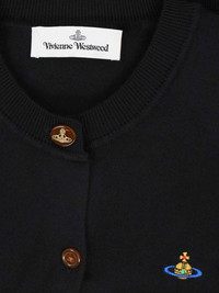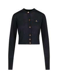 VIVIENNE WESTWOOD LOGO CROP CARDIGAN IN BLACK SILK AND WOOL WITH CREW NECK, BUTTON CLOSURE, MULTICOLOR "ORB" EMBROIDERED LOGO ON THE CHEST, RIBBED TRIMS, STRAIGHT HEM. PRODUCT INFO PRODUCT CODE 1803002U Y001AN402 COMPOSITION: 70% WOOL, 30% SILK SIZE AND FIT: REGULAR FIT MADE IN: ITALY