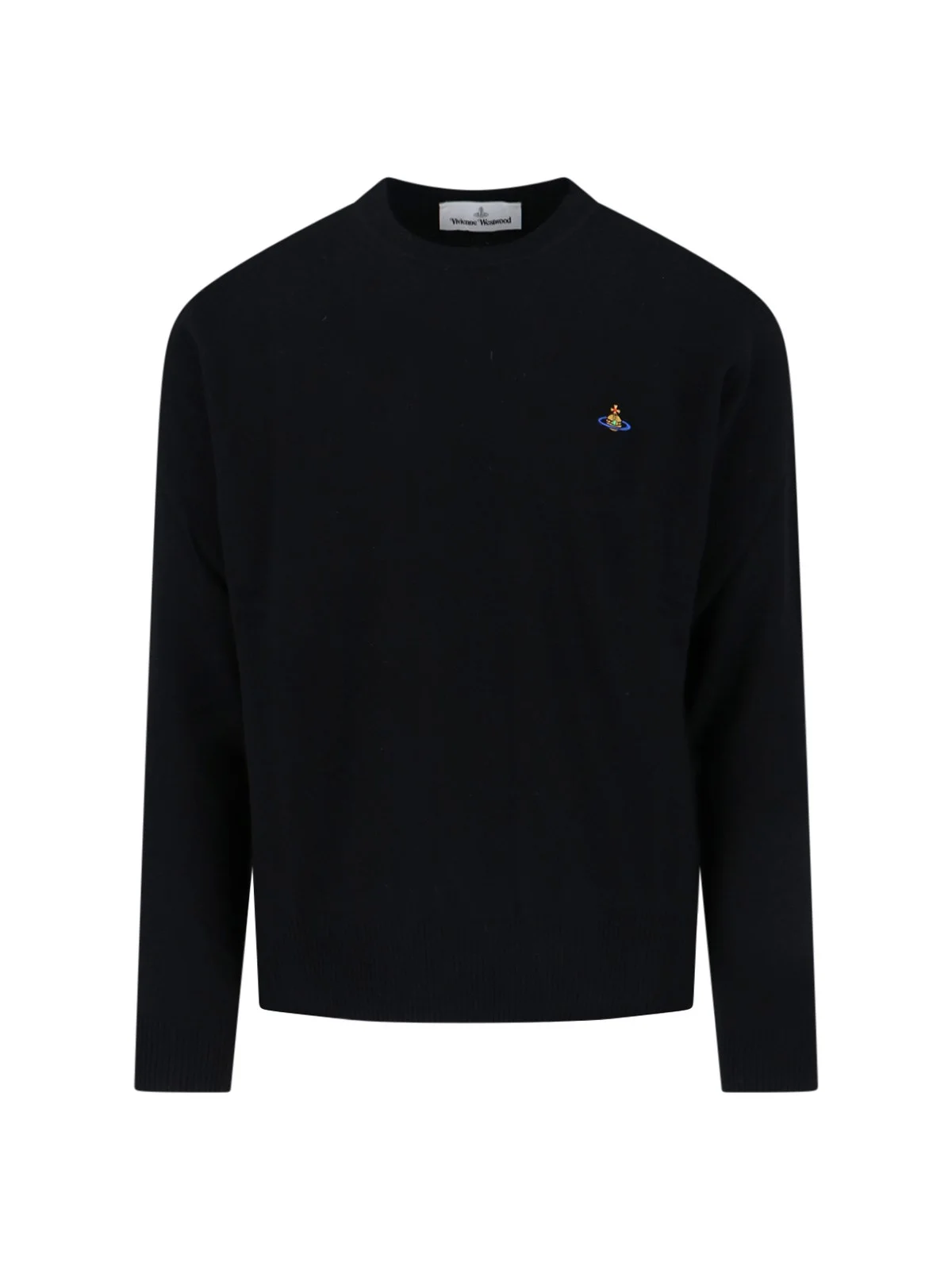 VIVIENNE WESTWOOD 'ORB' SWEATER IN VIRGIN WOOL AND BLACK CASHMERE BLEND WITH CREW NECK, CONTRAST 'ORB' LOGO EMBROIDERY AT THE FRONT, RIBBED TRIMS, STRAIGHT HEM. PRODUCT INFO PRODUCT CODE 2701002T Y0018N401 COMPOSITION: 90% MERINO WOOL, 10% CASHMERE SIZE AND FIT: REGULAR FIT MADE IN: ITALY