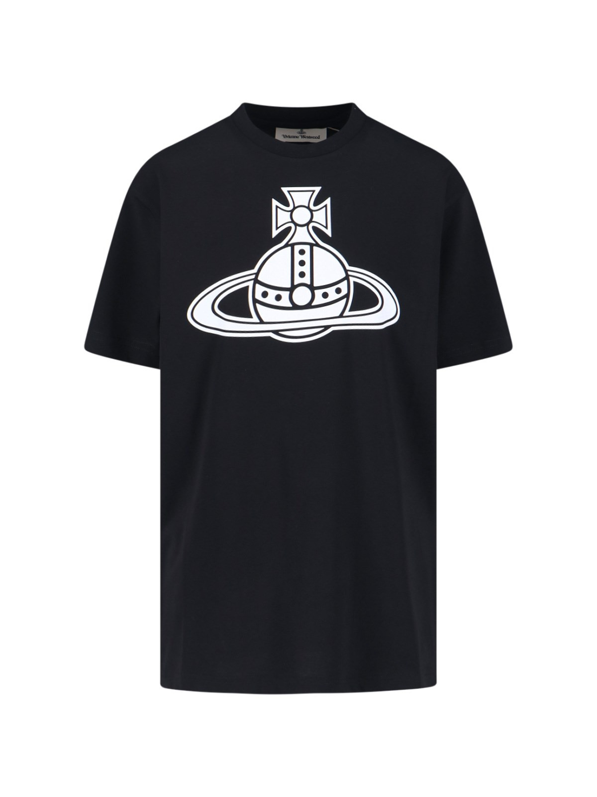 VIVIENNE WESTWOOD 'ORB' BLACK COTTON CREW NECK T-SHIRT WITH SHORT SLEEVES, MAXI 'ORB' LOGO PRINT ON THE FRONT, RIBBED TRIMS, STRAIGHT HEM. PRODUCT INFO PRODUCT CODE 3G010049 J001MN401 COMPOSITION: 100% COTTON SIZE AND FIT: REGULAR FIT MADE IN: TUNISIA