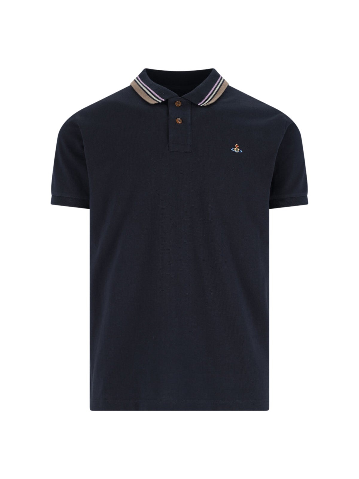 VIVIENNE WESTWOOD ORB POLO SHIRT IN BLUE COTTON WITH CLASSIC COLLAR, MULTICOLOR STRIPED PATTERN, BUTTON CLOSURE, MULTICOLOR LOGO EMBROIDERY ON THE CHEST, AND STRAIGHT HEM. PRODUCT INFO PRODUCT CODE 2H01000P J0009K410 COMPOSITION: 100% COTTON SIZE AND FIT: REGULAR FIT MADE IN: TURKEY