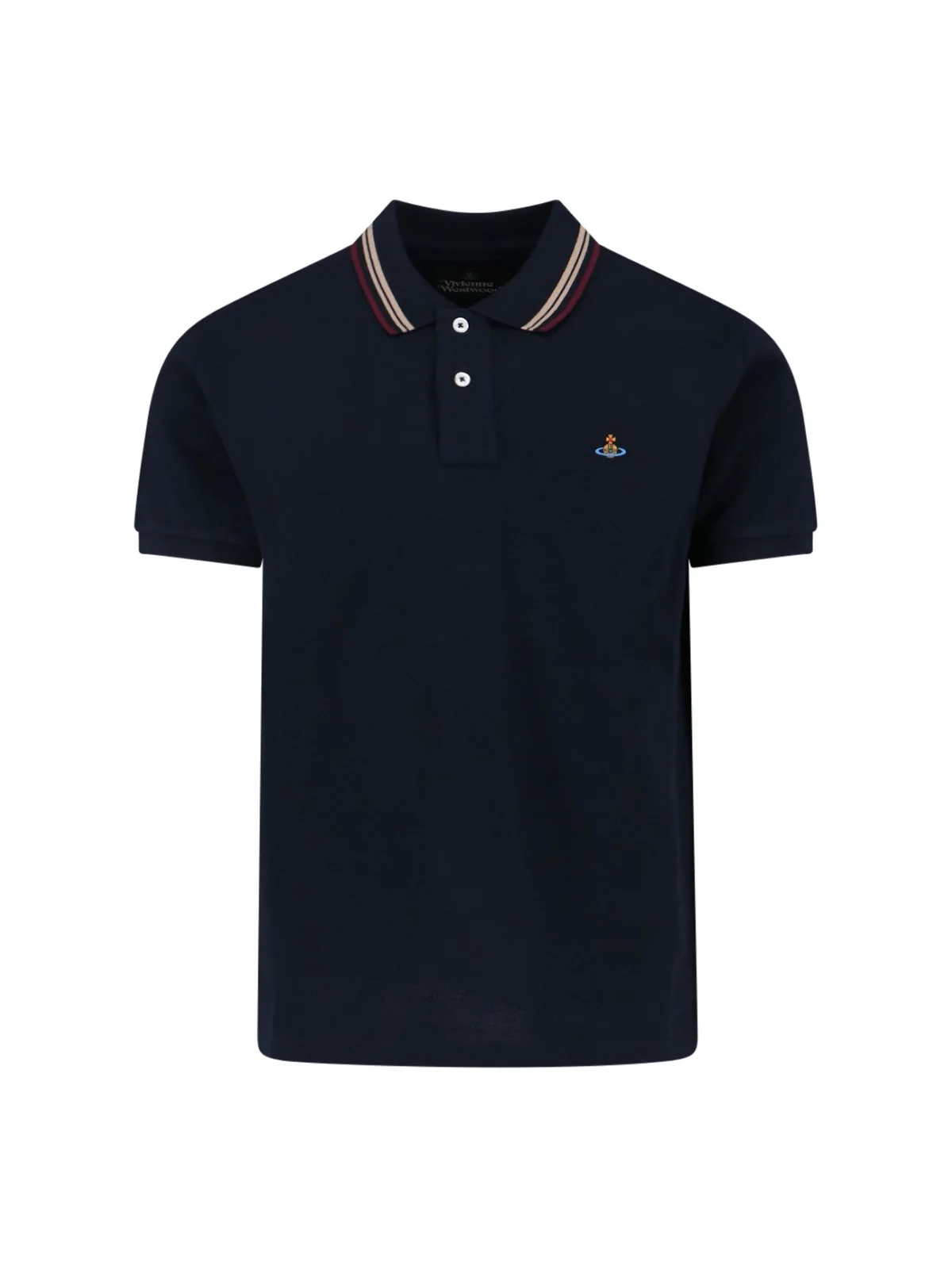 VIVIENNE WESTWOOD ORB POLO SHIRT IN DARK BLUE COTTON WITH CLASSIC MULTICOLOR COLLAR, BUTTON CLOSURE, ORB EMBROIDERED LOGO ON THE FRONT, AND STRAIGHT HEM. PRODUCT INFO PRODUCT CODE 2H01000U J00AUK410 COMPOSITION: 100% COTTON SIZE AND FIT: REGULAR FIT MADE IN: TURKEY