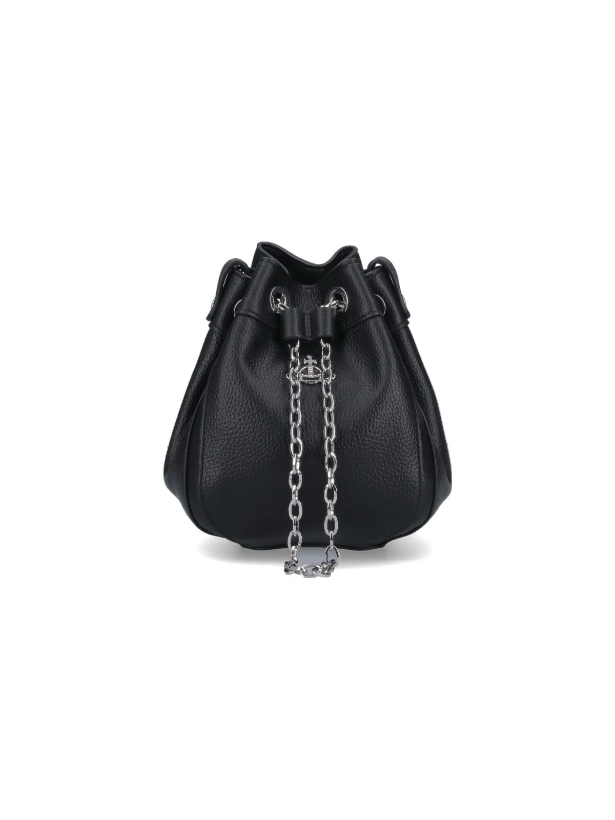 VIVIENNE WESTWOOD 'CHRISSY' SMALL BUCKET BAG IN BLACK NYLON WITH SILVER METAL CHAIN SLIDING SHOULDER STRAP, DRAWSTRING CLOSURE, SILVER METAL ORB LOGO ON THE FRONT, REMOVABLE SIDE STRAP, SINGLE INNER COMPARTMENT. PRODUCT INFO PRODUCT CODE 4C030004W S000DN403 COMPOSITION: 100% POLYURETHANE SIZE AND FIT: H 22 X W 20 X D 10.5 CM MADE IN: CHINA