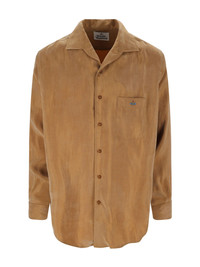VIVIENNE WESTWOOD SUEDE EFFECT SHIRT IN BROWN FABRIC WITH SUEDE EFFECT, CLASSIC COLLAR, BUTTON CLOSURE, CHEST POCKET, MULTICOLOR "ORB" LOGO EMBROIDERY DETAIL, BUTTON CUFFS, CURVED HEM. PRODUCT INFO PRODUCT CODE 2401003Y W0129R402 COMPOSITION: 100% LYOCELL SIZE AND FIT: REGULAR FIT MADE IN: ROMANIA