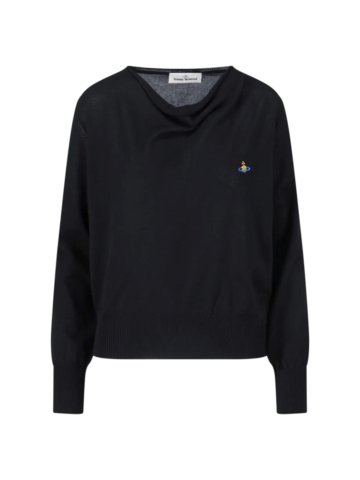 - SWEATER "PAMELA" VIVIENNE WESTWOOD IN BLACK COTTON - BOAT NECKLINE - LONG SLEEVES - MULTICOLOR EMBROIDERED LOGO ON THE FRONT PRODUCT INFO PRODUCT CODE 1803006F Y003FN401 COMPOSITION: 100% COTTON SIZE AND FIT: REGULAR FIT MADE IN: ITALY