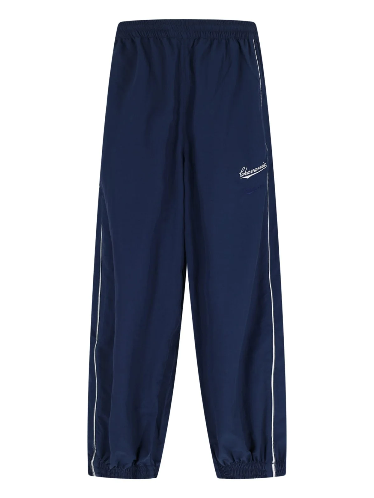 WILLY CHAVARRIA 'BAD BOY' BLUE FABRIC TRACK PANTS WITH MID ELASTIC WAISTBAND, TWO SIDE POCKETS, SIDE LOGO EMBROIDERY, CONTRAST TRIMS, STRAIGHT LEG. PRODUCT INFO PRODUCT CODE WCBTM0068049 COMPOSITION: 100% NYLON SIZE AND FIT: SOFT FIT MADE IN: KOREA