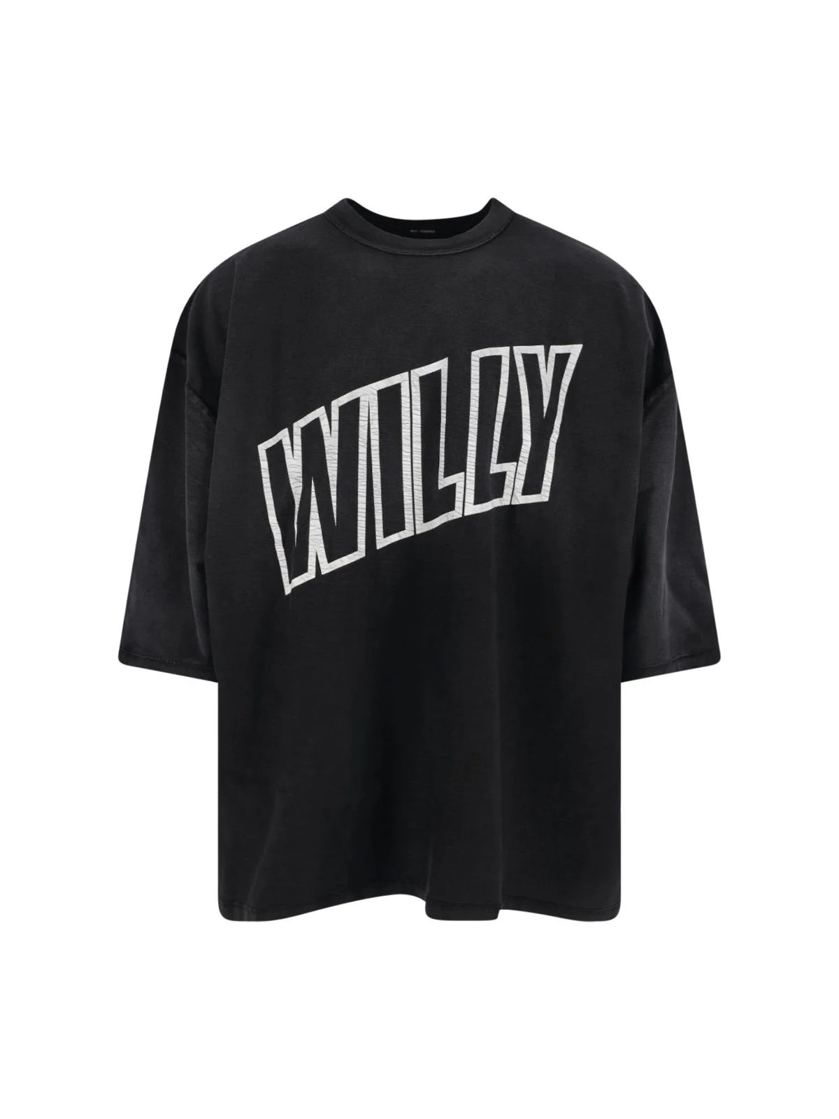WILLY CHAVARRIA 'WILLY' BLACK COTTON CREW NECK T-SHIRT WITH DROPPED SHOULDERS, HALF SLEEVES, CONTRAST MAXI LOGO PRINT ON THE FRONT, RIBBED TRIMS, STRAIGHT HEM. PRODUCT INFO PRODUCT CODE WCJSY0136001 COMPOSITION: 100% COTTON SIZE AND FIT: OVERSIZED FIT MADE IN: UNITED STATES OF AMERICA