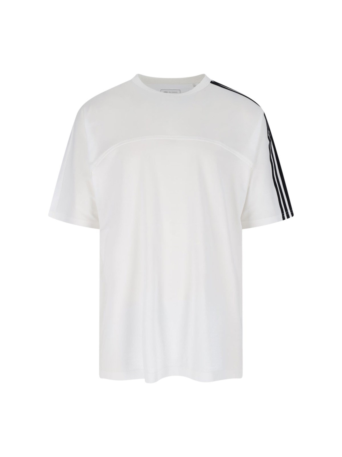 Y-3 WHITE COTTON T-SHIRT 3-STRIPES WITH CREWNECK, SHORT SLEEVES, CONTRASTING BANDS ON THE SLEEVE, SIDE SLITS, AND STRAIGHT HEM. PRODUCT INFO PRODUCT CODE JM7845CWHITE COMPOSITION: 100% COTTON SIZE AND FIT: SOFT FIT MADE IN: THAILAND