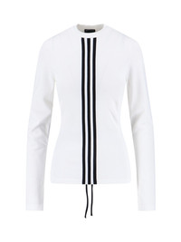 Y-3 3-STRIPES T-SHIRT IN WHITE VISCOSE BLEND WITH CREWNECK, CONTRASTING STRIPES ON THE FRONT, LOGO DETAIL ON THE BACK, DRAWSTRING ON THE HEM, RIBBED TRIM, AND STRAIGHT HEM. PRODUCT INFO PRODUCT CODE KD4760CWHITE BLACK COMPOSITION: 83% VISCOSE, 17% POLYESTER SIZE AND FIT: REGULAR FIT MADE IN: CHINA