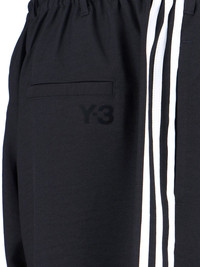 Y-3 3-STRIPES SPORTS PANTS IN BLACK FABRIC WITH MEDIUM ELASTIC WAISTBAND, DRAWSTRING, BUTTON AND ZIP CLOSURE, TWO SIDE POCKETS, ICONIC SIDE BANDS, TONE-ON-TONE LOGO PRINT ON THE BACK, TWO BACK POCKETS, WIDE LEG. PRODUCT INFO PRODUCT CODE JW7353BLACK COMPOSITION: 100% POLYESTER SIZE AND FIT: REGULAR FIT MADE IN: CHINA
