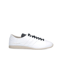 Y-3 JAPAN SNEAKERS IN WHITE LEATHER WITH ROUND TOE, LACES, LOGO EMBOSSED ON A CONTRASTING LEATHER TAB, THREE SIDE PLEATS, GOLD LOGO PRINT ON THE SIDE, AND TEXTURED RUBBER SOLE. PRODUCT INFO PRODUCT CODE JS1110CWHITE BLACK TALC COMPOSITION: 100% LEATHER MADE IN: CHINA - SOLE: 100% RUBBER