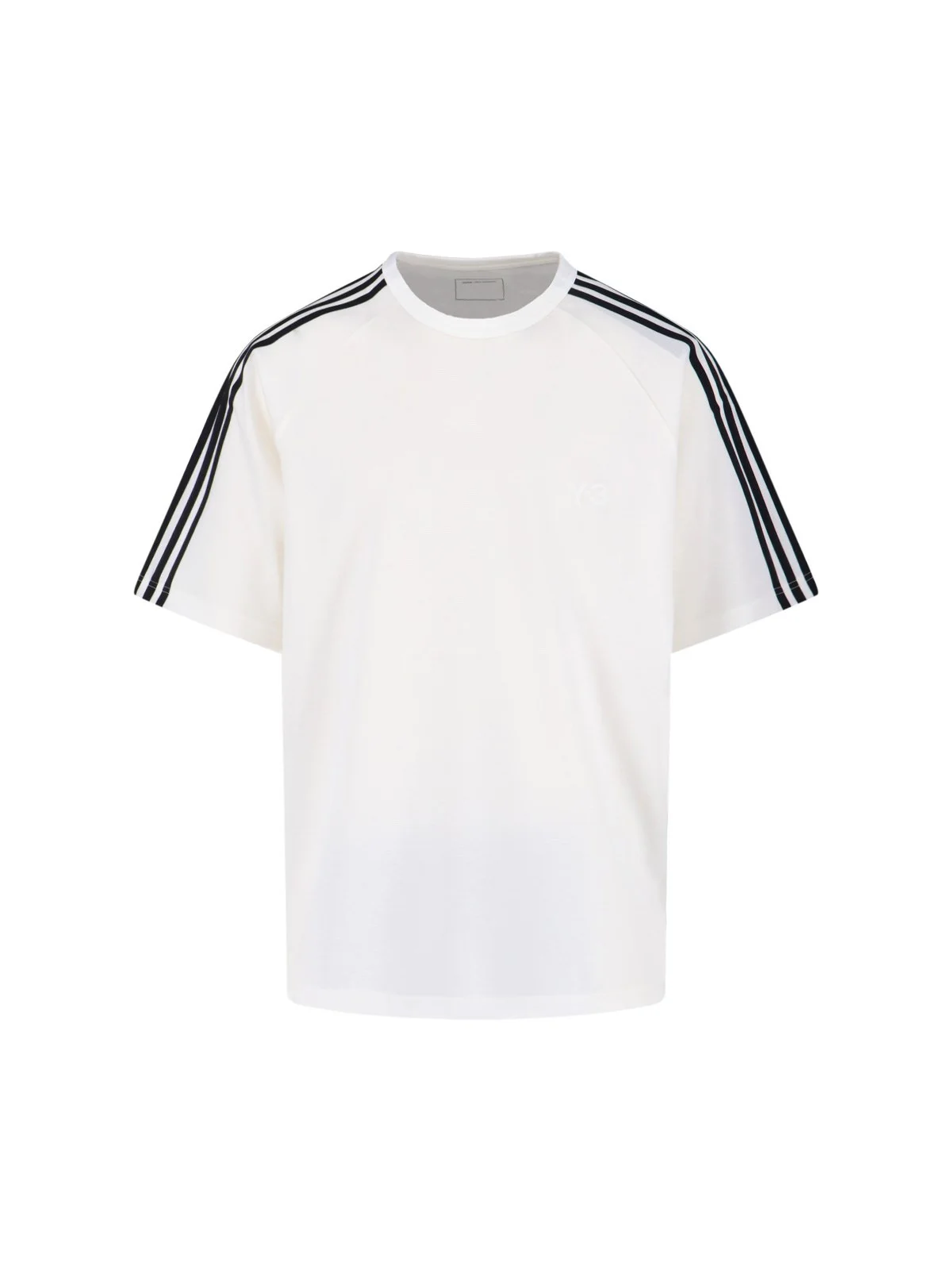 T-SHIRT LOGO Y-3. IN WHITE FABRIC, CREW NECK, SHORT SLEEVES, CONTRASTING BANDS ON THE SLEEVE, STRAIGHT HEM. PRODUCT INFO PRODUCT CODE JY8187CORE WHITE COMPOSITION: 60% LYOCELL, 20% POLYAMIDE, 15% WOOL, 5% ELASTANE SIZE AND FIT: SOFT FIT MADE IN: THAILAND