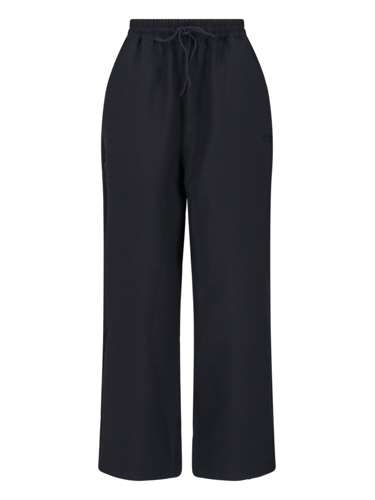 Y-3 LOGO SPORTS PANTS IN BLACK FABRIC WITH MEDIUM ELASTIC WAISTBAND, DRAWSTRING CLOSURE, TWO SIDE POCKETS, TONE-ON-TONE LOGO ON THE SIDE, TONE-ON-TONE STRIPE DETAIL, STRAIGHT LEG. PRODUCT INFO PRODUCT CODE JV6772BLACK COMPOSITION: 100% POLYESTER SIZE AND FIT: REGULAR FIT MADE IN: VIETNAM