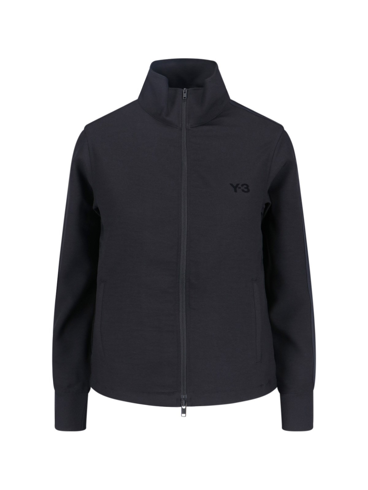 Y-3 LOGO ZIP SWEATSHIRT IN BLACK FABRIC WITH HIGH NECK, DOUBLE ZIP CLOSURE, TONE-ON-TONE EMBROIDERED LOGO ON THE FRONT, ICONIC TONE-ON-TONE BANDS ON THE SIDE, AND STRAIGHT HEM. PRODUCT INFO PRODUCT CODE JV6773BLACK COMPOSITION: 100% POLYESTER SIZE AND FIT: REGULAR FIT MADE IN: VIETNAM