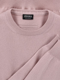 ZEGNA PINK CASHMERE SWEATER WITH CREW NECK, LONG SLEEVES, TONE-ON-TONE LOGO DETAIL ON THE BACK, RIBBED TRIM, STRAIGHT HEM. PRODUCT INFO PRODUCT CODE RUGK10A2 110R92 COMPOSITION: 100% CASHMERE SIZE AND FIT: SLIM FIT MADE IN: ITALY