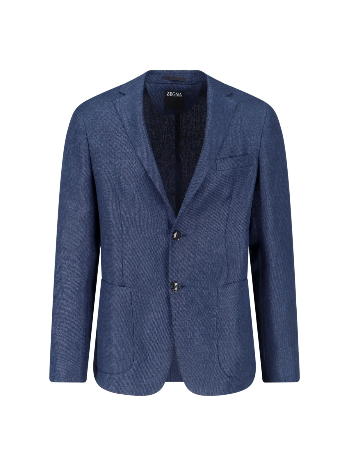 SINGLE-BREASTED BLAZER IN BLUE WOOL AND LINEN, LAPELS, LONG SLEEVES, SINGLE-BREASTED BUTTON CLOSURE, TWO FRONT POCKETS. PRODUCT INFO PRODUCT CODE R383008A3 1DNMG08R COMPOSITION: 58% LINEN, 42% WOOL SIZE AND FIT: REGULAR FIT MADE IN: TURKEY