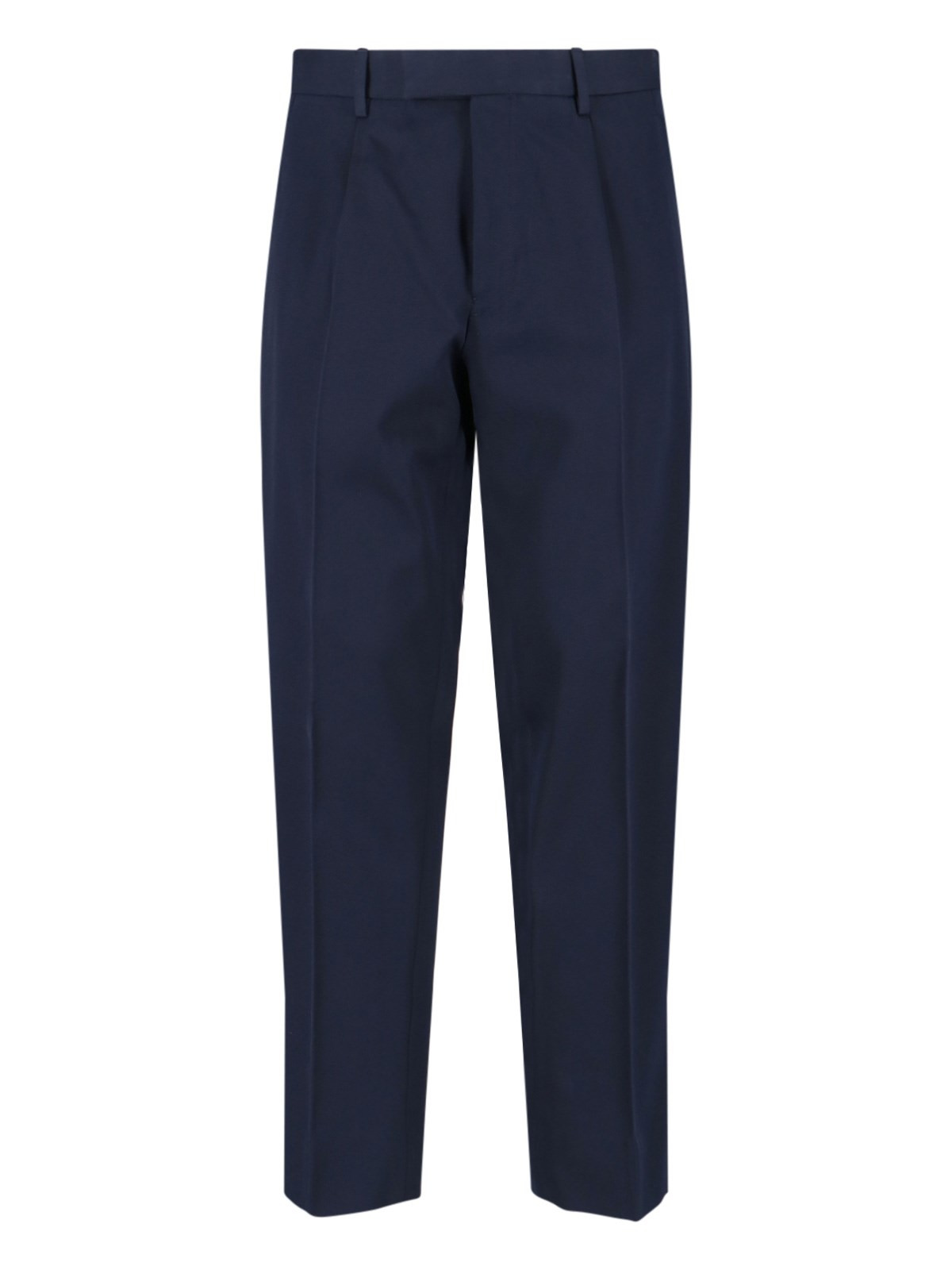 ZEGNA TAILORED PANTS IN NAVY WOOL AND COTTON BLEND WITH MID WAIST, BELT LOOPS, BUTTON, HOOK AND ZIP CLOSURE, FRONT PLEATED DETAIL, TWO BACK POCKETS, STRAIGHT LEG. PRODUCT INFO PRODUCT CODE RUGI04A2 TP45B09R COMPOSITION: 57% COTTON, 43% WOOL SIZE AND FIT: REGULAR FIT MADE IN: ROMANIA