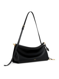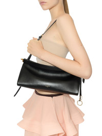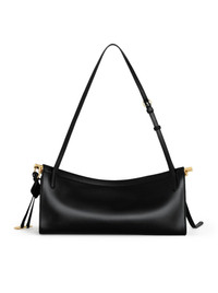 -East West bag with a curved shape that hugs the body -Zipper opening system with leather lining -Iconic detail with fold on the bottom of the bag -Decorative laces with metal rings -To be carried on the shoulder or cross-body thanks to the adjustable shoulder strap -Shiny calfskin -Dimensions (cm): L 30 x H 14 x D 9 Made in Italy Composition: Calf Leather 100 % Calf leather Color code: 999 NOIR AA1S01430CA332