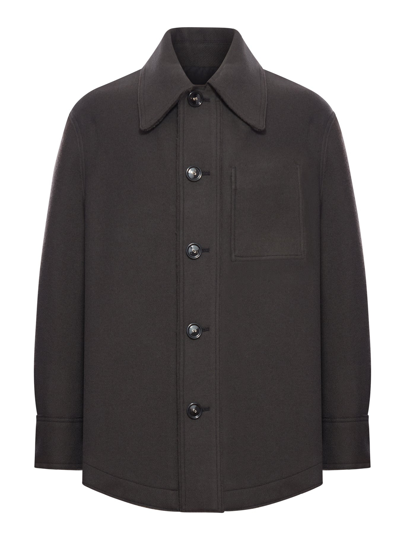- Classic collar - Front button closure - Front patch pocket - Long sleeves - Buttoned cuffs - Curved hem - 100% wool Made in Romania Composition: Wool 100% wool Color code: 020 ANTHRACITE UJK824WV0078