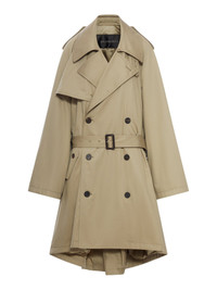 -Wide collar and lapels -Trench style lapels -Two shoulder tabs -Raglan sleeves -Front button storm flap -Double breasted with buttons on the front -Two side buttoned flap pockets -Belt with buckle -Back vent -Beige -Oversized fit -Lined Made in Italy Composition: Cotton 100% cotton Color code: 9772 EXPLORER BEIGE 839117TSP13
