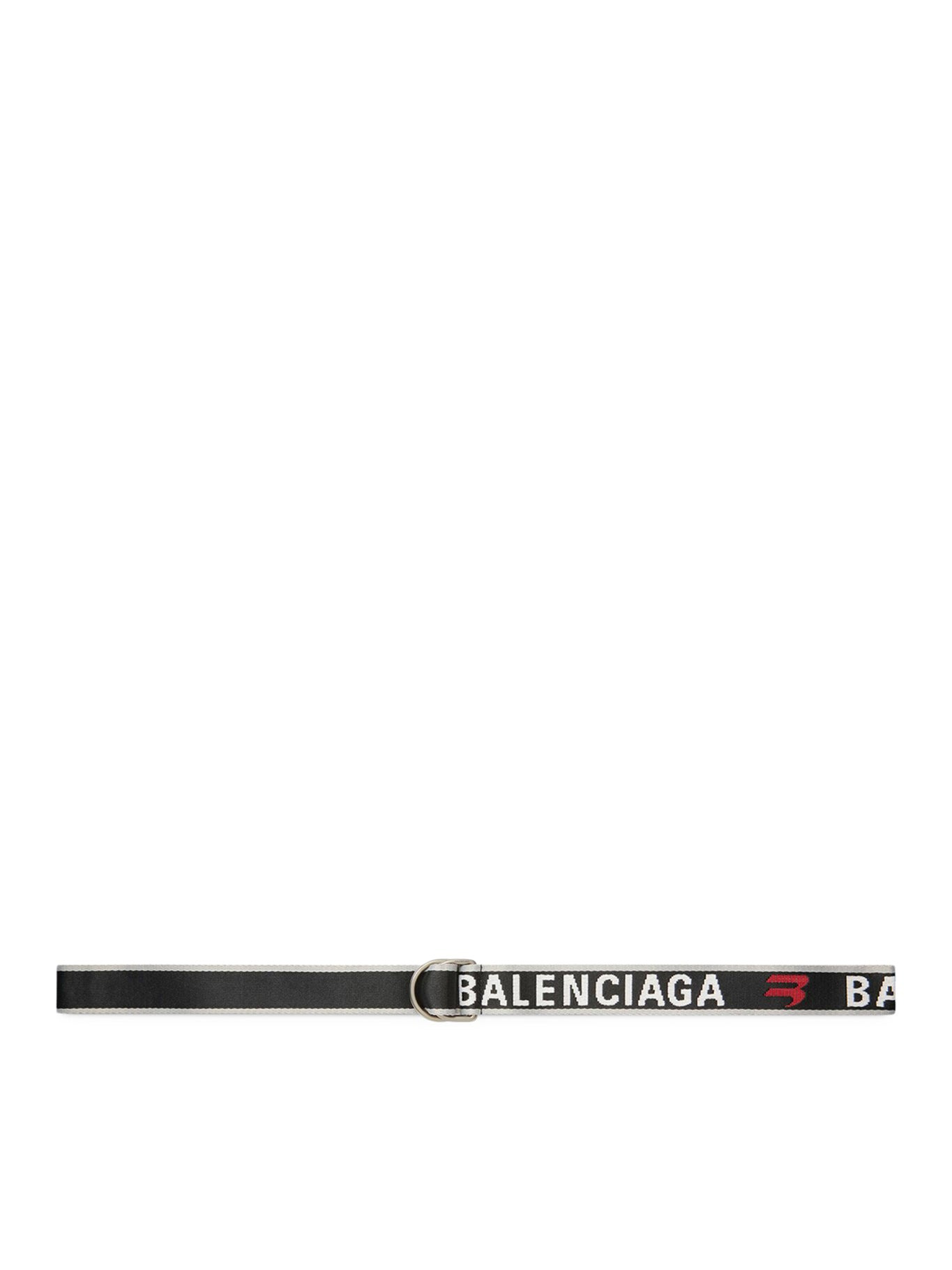 D Ring belt in Balenciaga gray and red reinforced fabric, taken from look 54 from Balenciaga`s Red Carpet Summer 22 Collection. • Measurements: Height: 3.3 cm • Reinforced fabric • Balenciaga jacquard logo • Antique silver finishes • Adjustable closure Made in Italy Composition: Polyester Color code: 1063 BAL GREY CARMIN RED 703137210AA