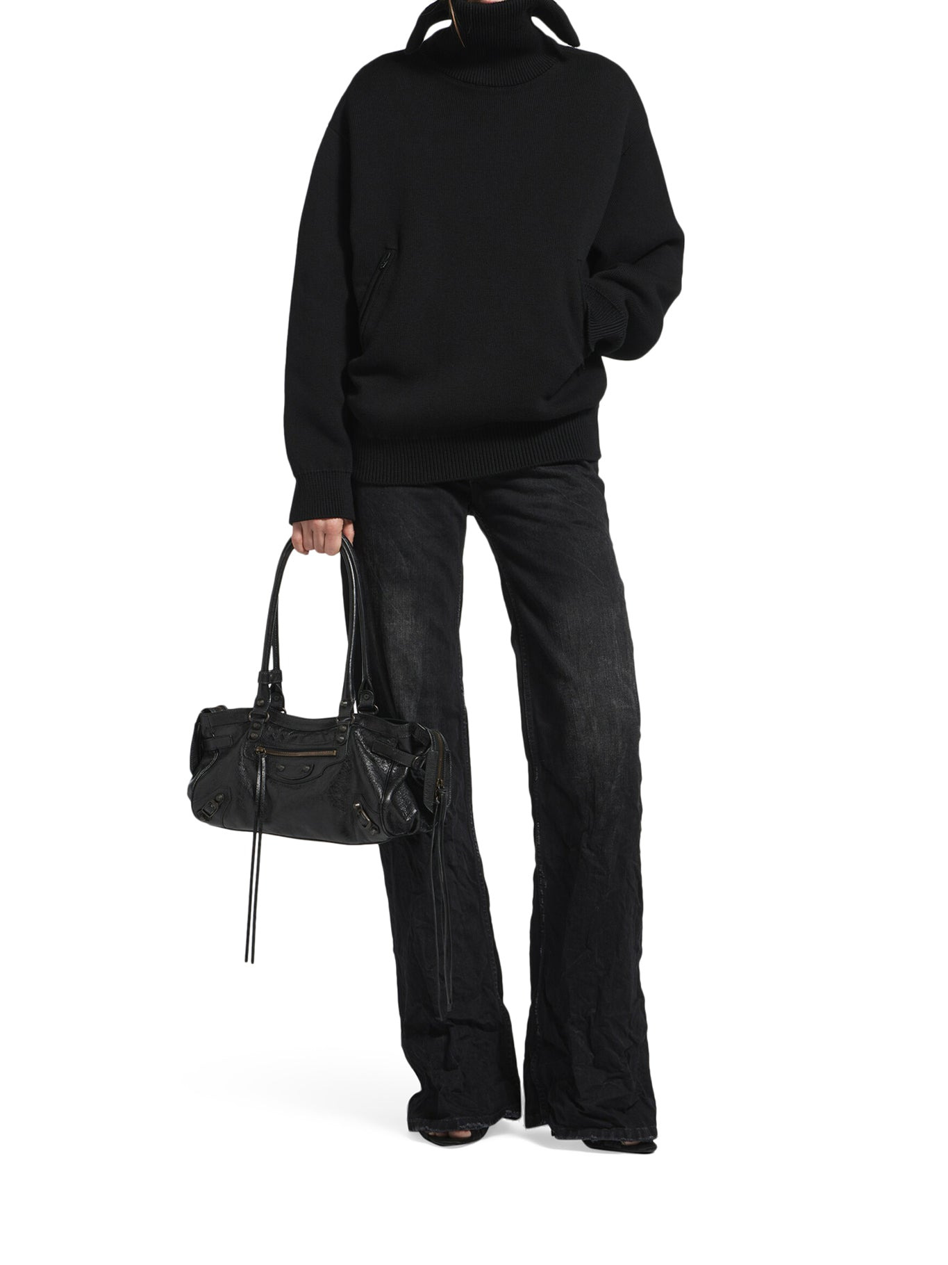 - Ribbed turtleneck - Back zip opening - Long sleeves - Elasticated ribbed cuffs - Two front zip pockets - Straight hem - Fitted front - Relaxed fit back - Black Made in Italy Composition: Cotton 100% Cotton Color code: 1000 BLACK 848840T3421