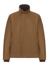 - High collar with button - Fur lining - Front button closure with hidden zip - Lined - Logo patch on sleeve - Slanted side pockets on the front - Long sleeves Made in Moldavia Composition: Cotton 100% Waxed cotton Color code: SN31 SAND MWX2504MWX
