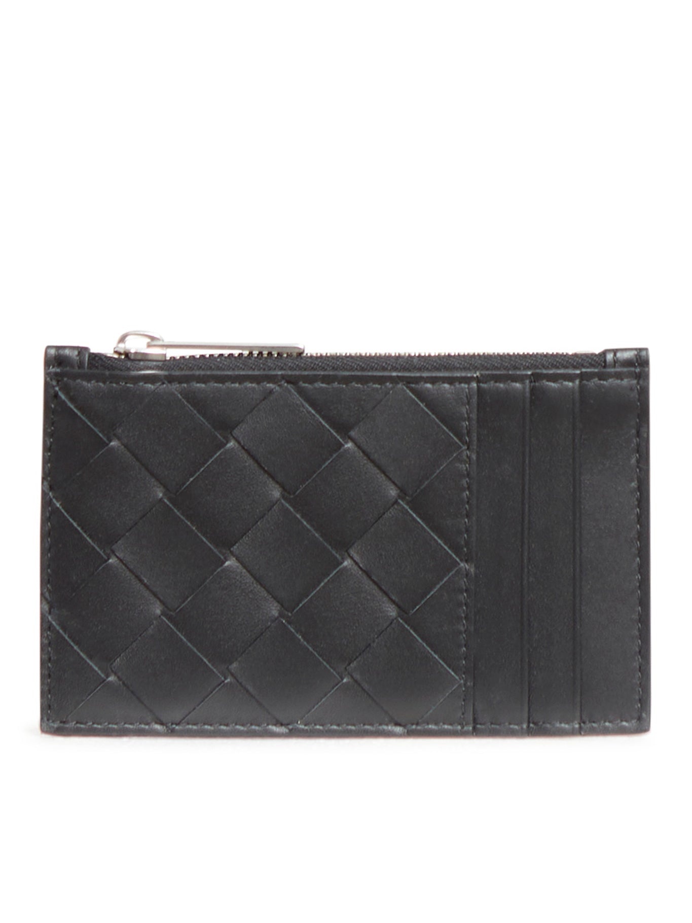 - Card holder in leather with Intrecciato motif - Six card slots, one zip coin purse - Material: 100% Calf leather - Inside: calfskin Made in Italy Composition: Calf Leather 100% calf Leather Color code: 8803 BLACK SILVER 755985VCPQ3