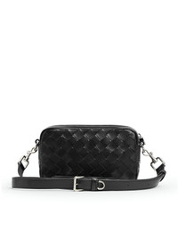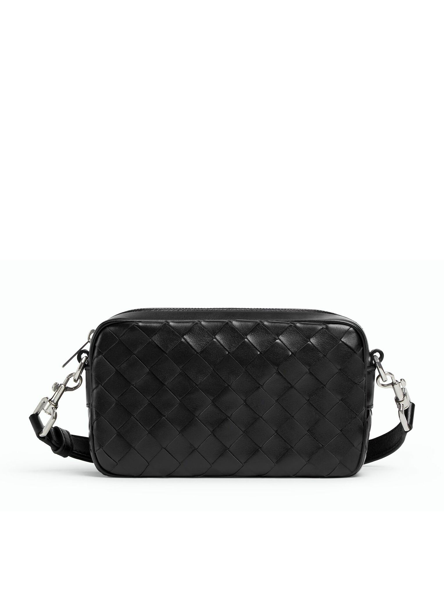 • Mini Intrecciato leather cross-body bag with detachable strap and metal D-ring • One interior flat pocket • Zipper closure Material: 100% Calfskin • Lining: Canvas • Color: Black • Hardware: Silver finish • Height: 12.5 cm | 4.9" • Width: 20 cm | 7.9" • Depth: 5 cm | 2" • Strap drop: 55 cm | 21.7" Made in Italy Composition: Leather 100% leather Color code: 8803 BLACK SILVER 765911V2HL1