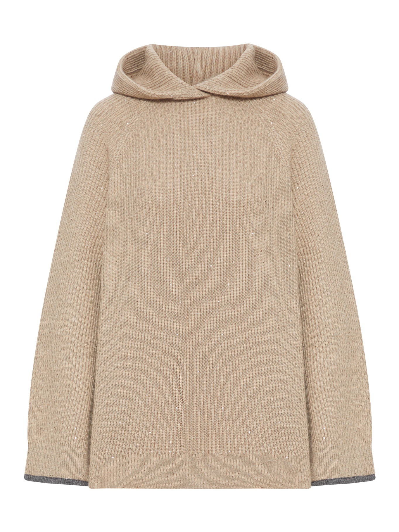 - Hood - Long raglan sleeves - Ribbed cuffs and hem - Contrasting cuffs - Straight hem Made in Italy Composition: Cashmere 93% Cashmere 7% Silk Color code: CN277 BROWN PIOMBO MEF785709